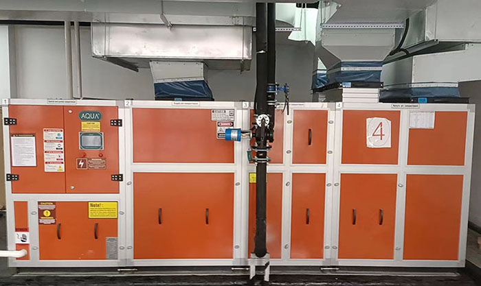 AQUA蘑菇视频在线观看三集一體恒溫除濕熱泵集除濕、恒溫、池水加熱、熱能回收、新風處理五大功能於一體,在空氣源與熱回收技術賦能之下,可以用更少能耗解決體育館室內蘑菇视频在线官网高濕高氯難題,一年四季保證室內濕度、水溫、室溫適宜。